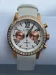 Корпус часов выполнен из благородного розового золота, а циферблат украшен бриллиантами, добавляющими блеск и роскошь. В качестве циферблата использовано уникальное сапфировое стекло Krysterna, обеспечивающее исключительную устойчивость к царапинам и повреждениям, а механизм часов – точный японский кварцевый.